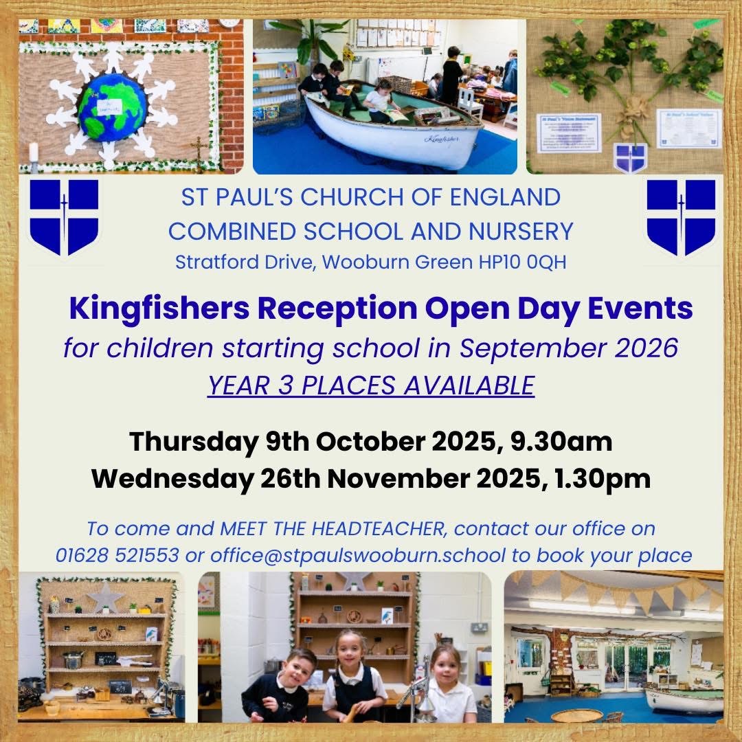 Come and join us for our Open Day at St Paul's on 9th October at 9:30am or 26th November at 1:30pm - click for more details.